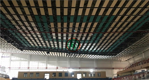 凱音吸聲體是專用于體育館空間吸聲裝飾作用的功能性裝飾材料,是一種分散懸掛于建筑空間上部,用以降低室內(nèi)噪聲或改善室內(nèi)音質(zhì)的吸聲構件。空間吸聲體具有用料少、重量輕、投資省、吸聲效率高、布置靈活、施工方便的特點。